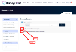 2. If you want to transfer your domain with click on “no 2” & type your Domain name.